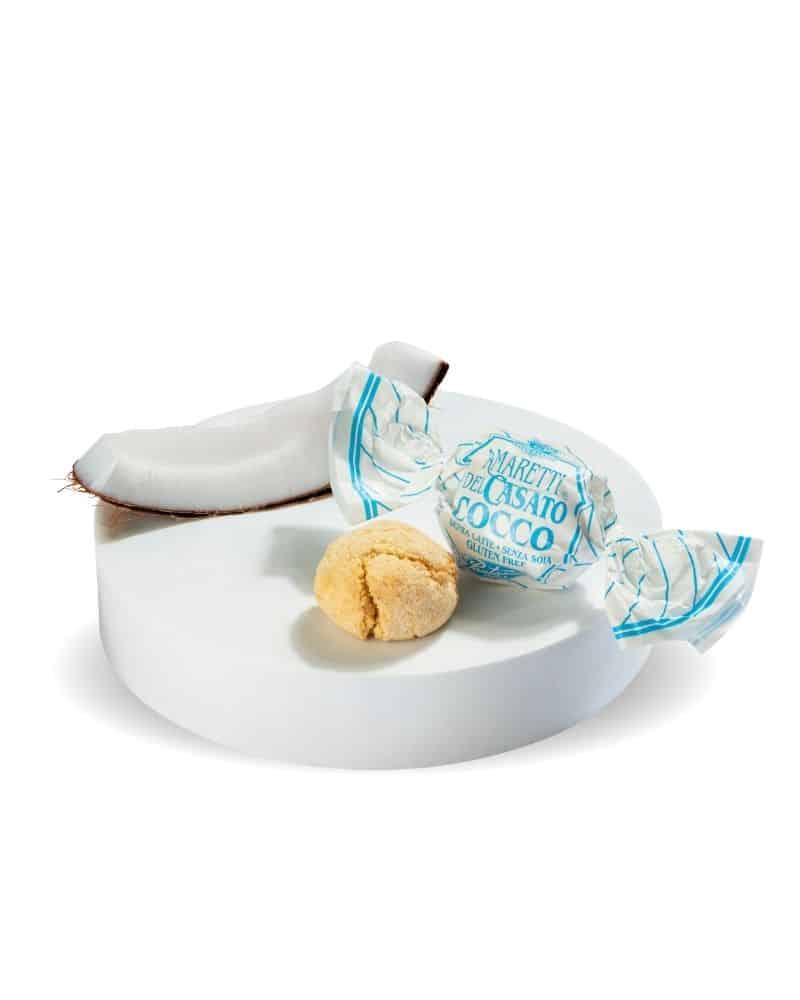 L’Amaretto al Cocco nasce da un impasto soffice a base di mandorle di albicocca e albume d’uovo, arricchito con farina di cocco per un gusto esotico e avvolgente. La consistenza è morbida e umida, con una leggera crosticina dorata. Il profilo aromatico è definito e armonioso, con note dolci e rotonde che richiamano il cocco fresco, in perfetto equilibrio con la base mandorlata.