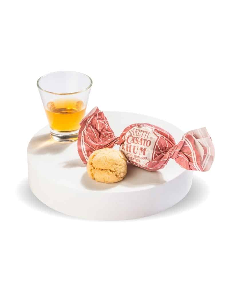 Ingredienti: zucchero, mandorle di albicocche (33%), albume d’uovo, rhum (10%), mandorle (2%), aroma naturale.Conservante: E202. Agente lievitante: E503(ii).Senza Glutine. Puo’ contenere tracce di: altra frutta a guscio e anidride solforosa