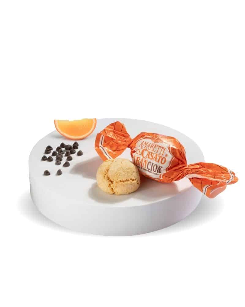 L’Aranciok è un amaretto che unisce la morbidezza dell’impasto tradizionale di mandorle di albicocca e albume d’uovo alla freschezza dell’arancia e all’intensità del cioccolato fondente. La consistenza è soffice, con una leggera crosticina dorata, mentre il profilo aromatico si distingue per l’equilibrio tra le note tostate della mandorla, la vivacità agrumata dell’arancia e la profondità del cioccolato. Un connubio armonioso che esalta la semplicità degli ingredienti selezionati.