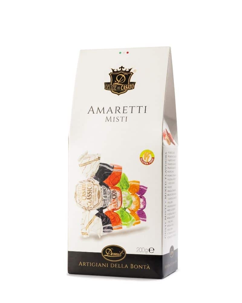 Questi amaretti sono stati creati con l'obiettivo di presentare il prodotto al cliente finale in modo accattivante, evidenziando la varietà di gusti che si distinguono anche attraverso l'imballaggio. La loro morbidezza e dolcezza sono caratteristiche distintive che rendono questi amaretti un'esperienza gustativa unica.